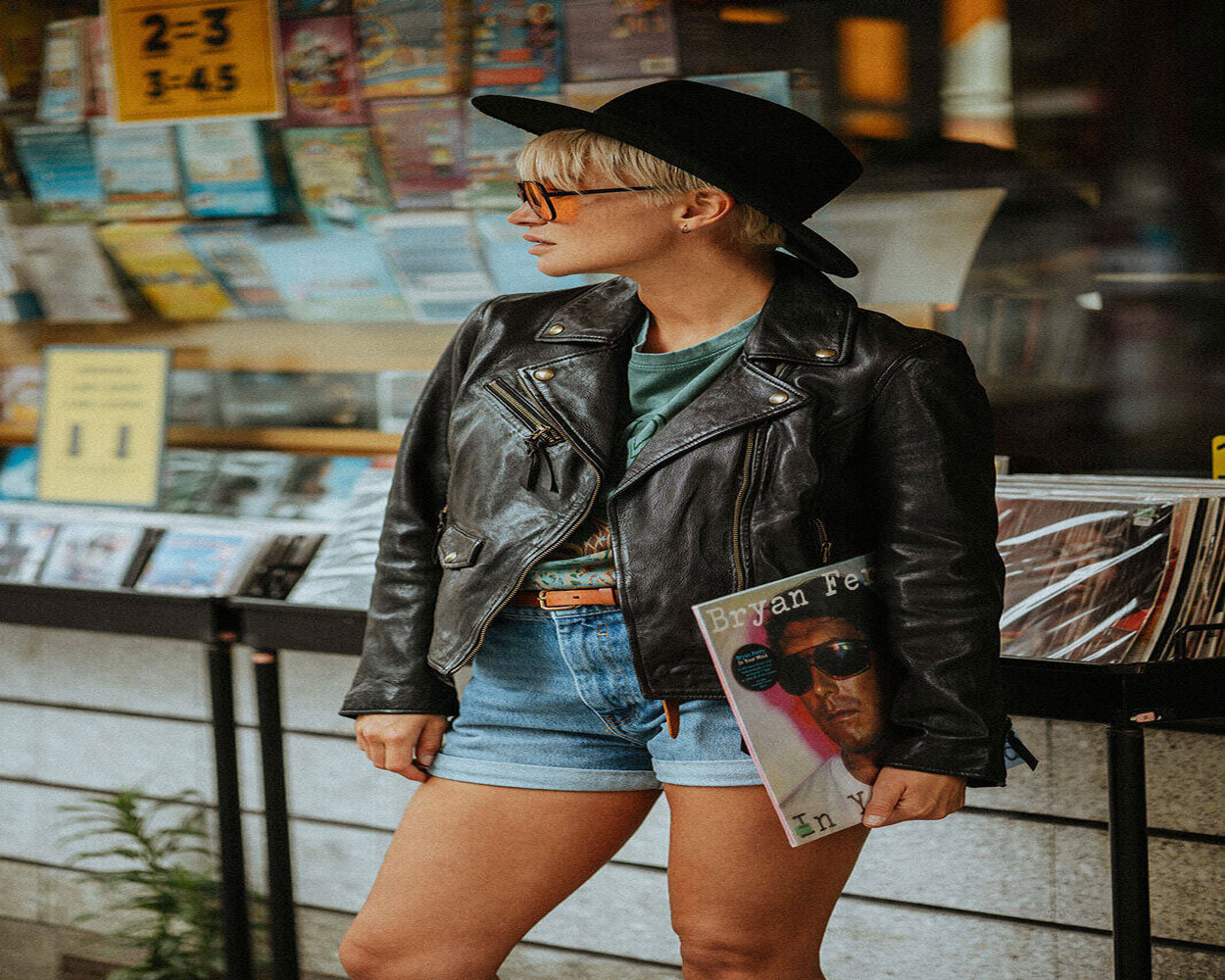 Wir fallen auf die Jacke dieser Frau aus der Rose Garden Collection aus, sie besteht aus Lamm mit Gemusebräunung. Die Jacke hat einen Schnitt -up -Schnitt in einem Biker -Stil mit originellem Design und Rock n 'Roll. Sein großes Bild im Rucken besteht aus Stickbuchstaben und einem gedruckten Blumenmotiv. Ansonsten finden wir naturlich den Druckspeisekragen, den asymmetrischen Verschluss. Sie haben eine kleine Reißverschluss in der Brust, zwei Taschen mit Reißverschluss vorne. Am Ende der Runde haben Sie auch einen einfachen Reißverschluss und die Große der anspannenden Beine mit Schleife an der Taille. Die Lederjacke ist in Baumwolle auf der Ebene des Korpers mit einer ausgefallenen Futter und den Ärmeln aus Polyester gefuttert.