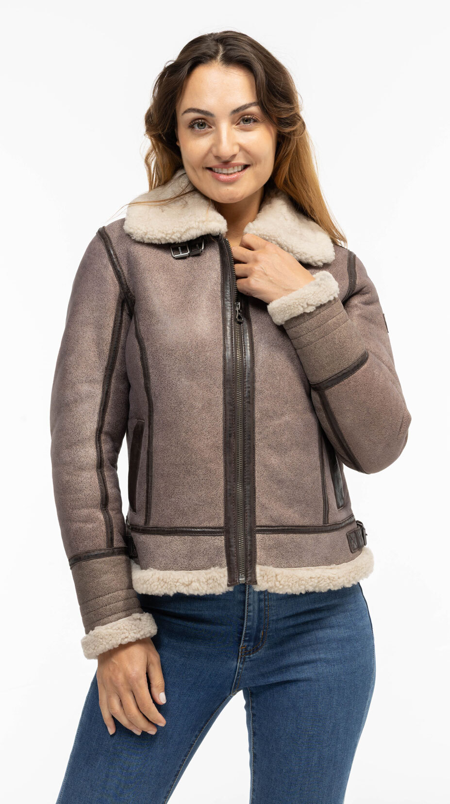 Dunkelbraune Damen-Bomberjacke aus Gipsy-Schaffell