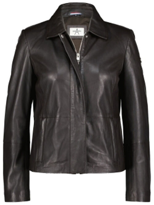 Braune Lammlederjacke fur Damen von Cuirs Guignard. Wir finden einen geraden Schnitt und gleichzeitig einen trendigen und zeitlosen Stil. Die Lederjacke hat einen Hemdkragen und 2 Reißverschlusstaschen in der Taille. Geschlossen wird es mit einem zentralen Reißverschluss mit einer Lasche mit Druckknopfen. Innen ist das Futter aus Polyester mit 1 Innentasche. Schlicht und vielseitig, passt es gut zu einem schicken oder eher lässigen Outfit. Erlauben Sie eine Korperlänge von 57 cm in Große S.