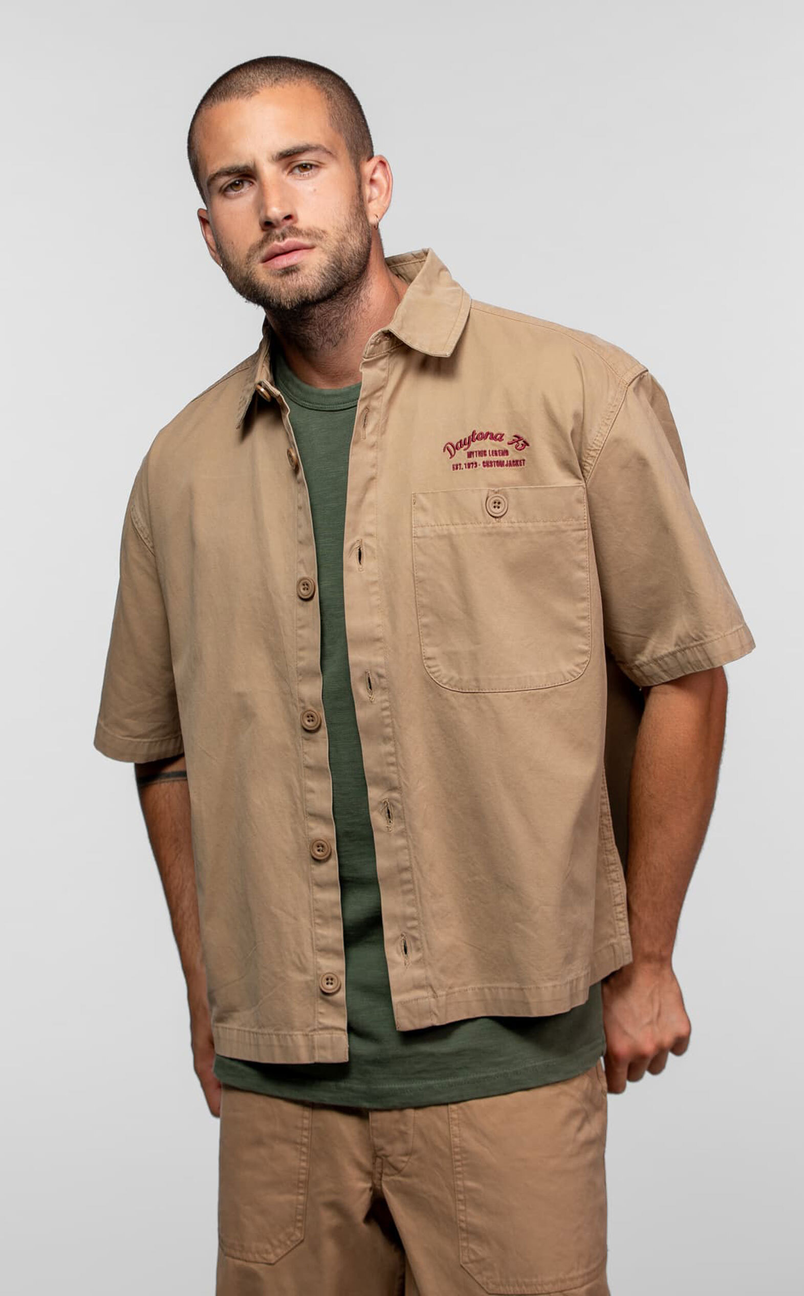 Übernehmen Sie einen lässigen und selbstbewussten Stil mit dem Daytona 73 Herren-Kurzarmhemd – Modell Tucson. Inspiriert von amerikanischer Arbeitskleidung greift dieses Hemd die Codes der Arbeitskleidung mit einem modernen, kastenformigen Schnitt und authentischen Details auf, die den Unterschied ausmachen.