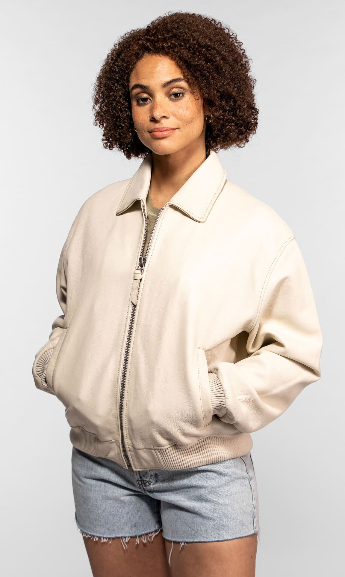 Ein Stuck zu finden, das Weiblichkeit und Charakter vereint, ist eine echte stilistische Herausforderung. Ein zu steifes Kleidungsstuck verdirbt Ihren Look, während ein schlecht geschnittenes Modell im Schrank bleibt. Das Modell „Tulip“ von Rose Garden revolutioniert Ihre Garderobe: eine elfenbeinfarbene Damen-Lederjacke die Ihre Silhouette mit bemerkenswerter Präzision formt.