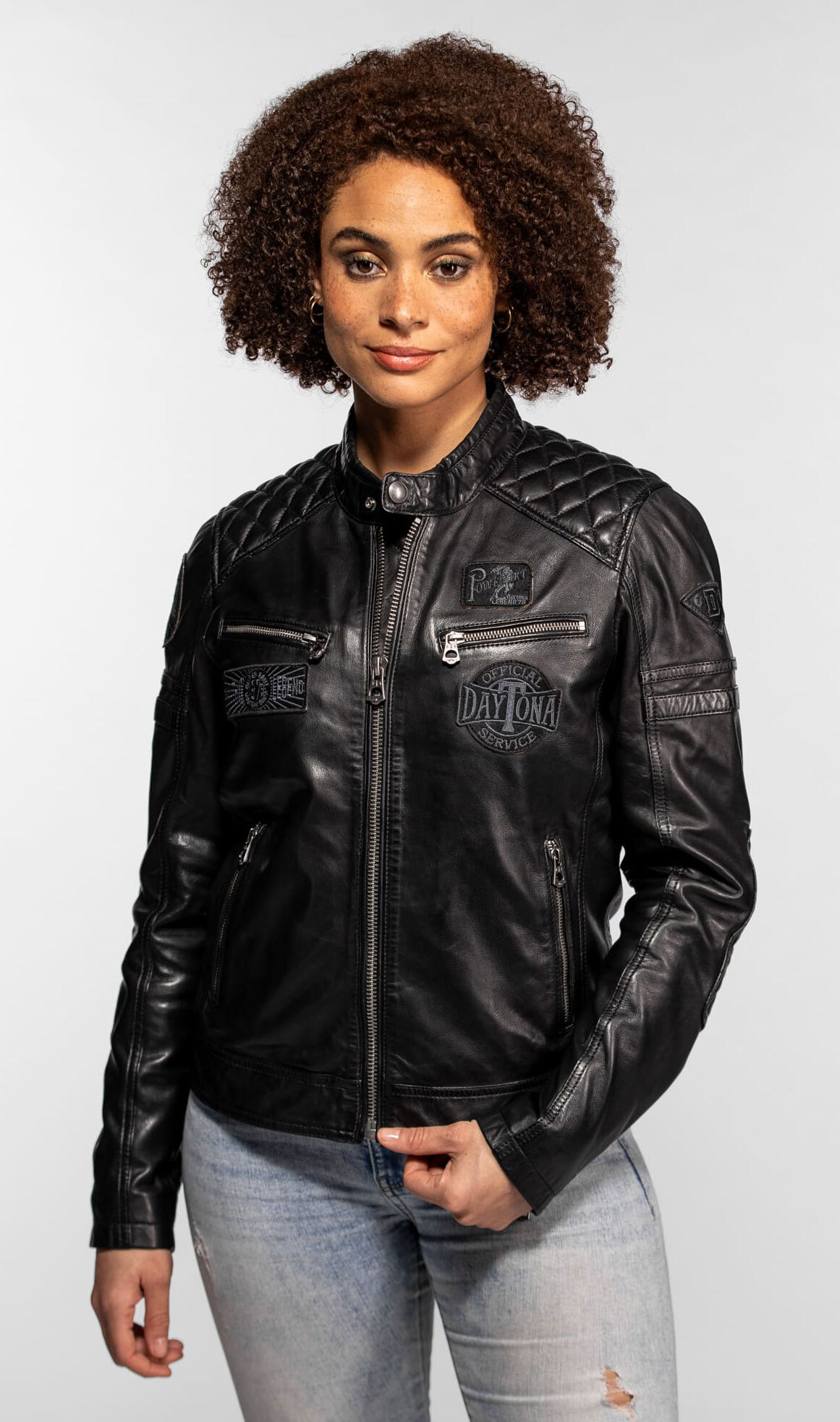 Wenn Sie sich fur diese Vintage-Motorradjacke fur Damen entscheiden, investieren Sie in ein Stuck, das seinesgleichen sucht. Unser Expertenauge erkannte sofort die hervorragende Qualität des Lammfells, das sofort flexibel ist, ohne Kompromisse bei der Widerstandsfähigkeit einzugehen. Im Gegensatz zu starren Geräten trägt es sich wie eine zweite Haut, egal ob Sie hinter dem Lenker Ihrer Maschine sitzen oder in der Stadt unterwegs sind. Das ist das Versprechen von Daytona73: ein Kleidungsstuck, das Ihre Geschichte durch eine Patina erzählt, die mit jedem zuruckgelegten Kilometer schoner wird.